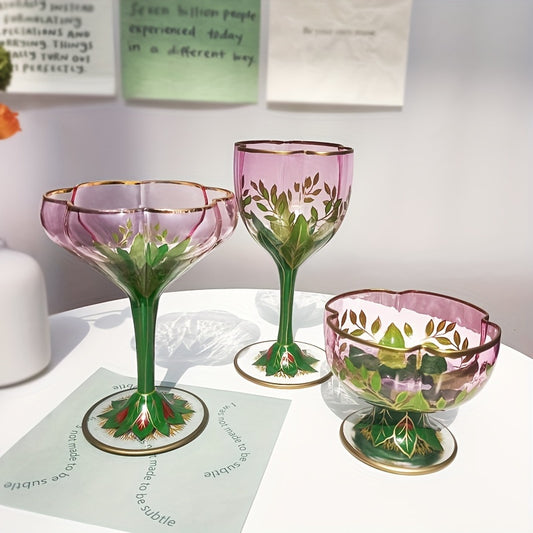 1 Stück Exquisiter Österreichischer Mittelalter-inspirierter Kristallglas Rotwein Champagnerkelch - Handbemalt in Rosa, Vintage Blumenmuster, Eleganter Kelch für Weinliebhaber, Sammler und Besondere Anlässe