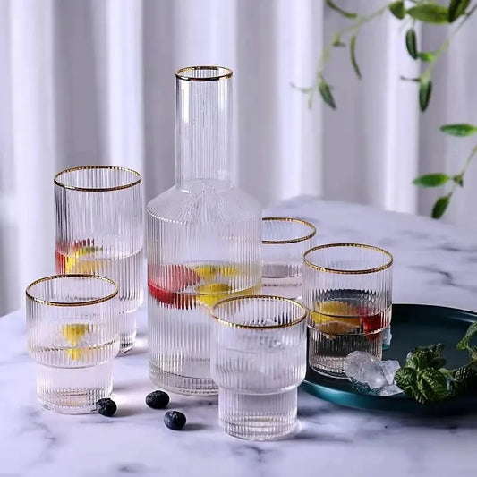 1.5L-50oz Kristall Glas Vertikale Home Glas Kalten Wasserkocher Trinken Wasser Tasse Set Dessert Becher Saft Tee Flasche Rauch Grau Trinkware