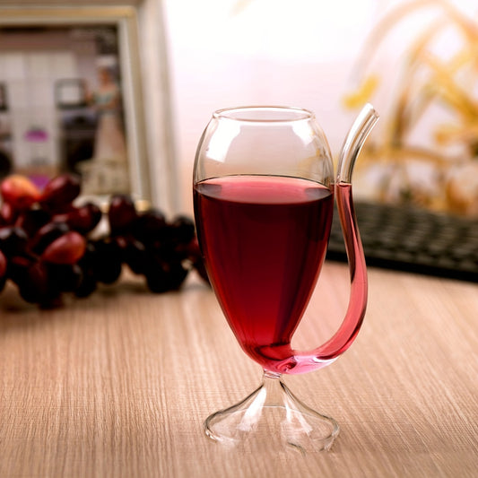 1 Stück LDQ Einzigartiger Weinglasbecher mit eingebautem Strohhalm, isoliert, weite Öffnung für Saft, Eiscreme, Champagner - Glasgeschirr für Partys, Restaurants, Cafés, Bars, Heimgebrauch - keine Montage erforderlich
