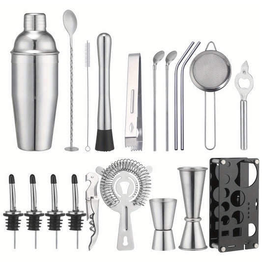 20-teiliges Edelstahl-Barkeeper-Set – Mit Shaker, Sieb & edlem Ständer