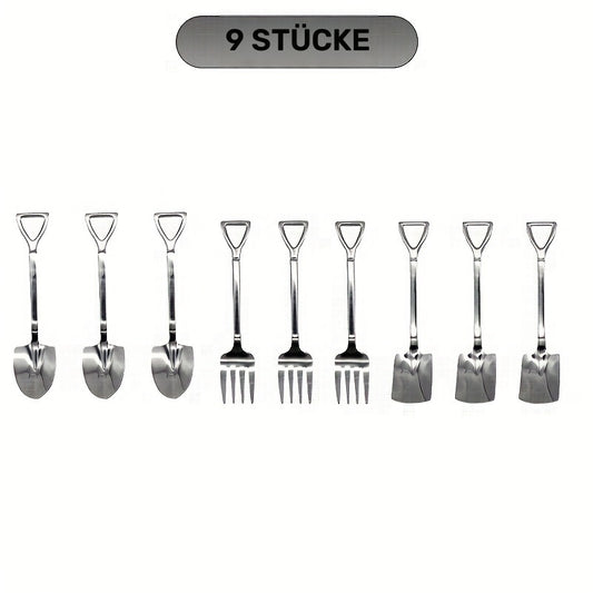 9/18-teiliges 6.1-Zoll Dessert-Mini-Spatel- und Gabelset enthält 3/6 Spatel, 3/6 spitze Löffel und 3/6 Edelstahlgabeln, Mischlöffel, Espressolöffel, Kuchenlöffel, Dessertlöffel, Spatel für Familienfeiern, Restaurants, Cafés (glänzend silbern)