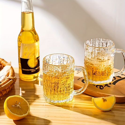 6er-Set, Vintage Rindenmuster Glasbecher mit Henkel, Kneipen-Bierglas, Bierkrüge - Bleifrei, Wiederverwendbar für Eiskaffee, Bier & Whiskey, Gefrierschrankgeeignet - Ideal für Partys & Zuhause, Sommer-Winter-Trinkgeschirr, 300ml/10.2oz, 480ml/16.4oz