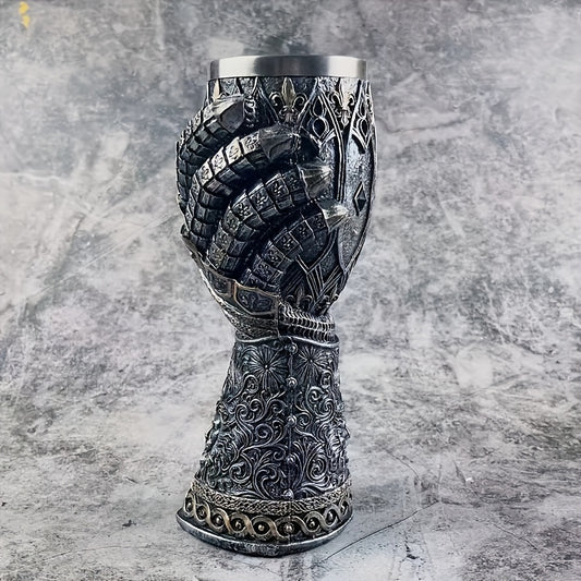 Mittelalterliches Rotweinglas – Vintage Kelch aus 3D geschnitztem Harz und Edelstahl, ideal für Whisky und Cocktails