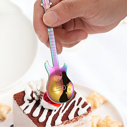 OUKEAI 5er-Pack Edelstahl Gitarrenlöffel-Set, Mehrzweck-Kaffee- und Dessert-Rührlöffel, Küchenutensilien zum Thema Musik