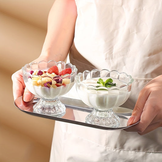 4/6 Stk. Hohe Fußbecher für Kaltgetränke, Eiscreme, Desserts, Milchshakes, Joghurt, Obstpudding, Restaurant, Hochwertige Snackschüssel