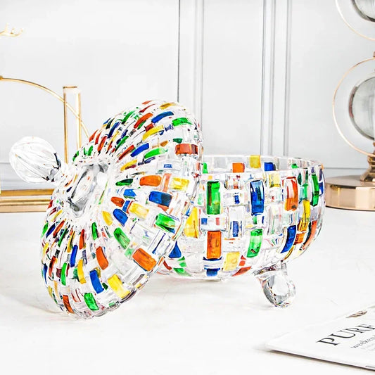 Beliebte handbemalte gewebte Obstschale mit Deckel Bonbondose, Saftbecher, Heimdekoration Dekoration, farbige Glasvase