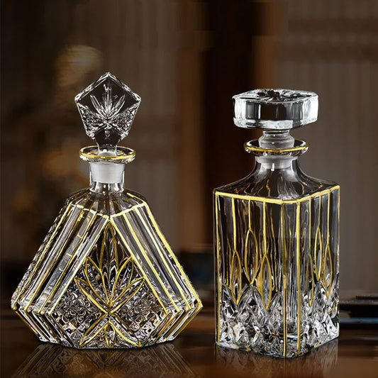 Kristallglas Rotwein Dekanter, ausländischer Weinkrug, Zeichnung Gold Line Whisky Flasche, Liquor Dispenser, 200ml, 900ml