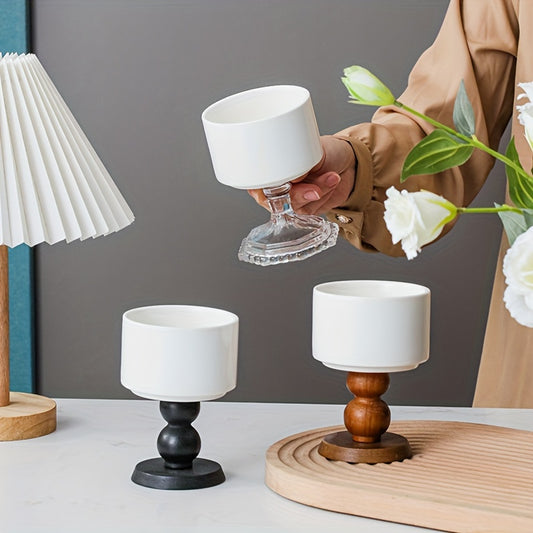 Vintage Französisch-inspirierter Keramikbecher mit Holzsockel - Polierter Glas-Kerzenhalter für die Heimdekoration, Perfekt für Halloween, Weihnachten, Ostern, Ramadan & Valentinstag