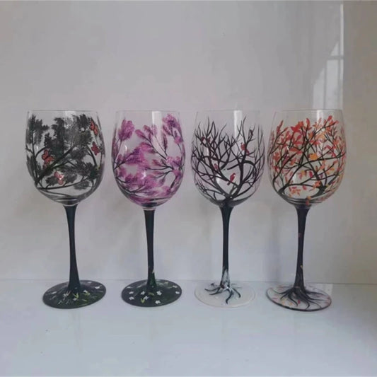 Vier Jahreszeiten Baum Weinglas Handgemalte Kelche Weinglas Einzigartige High Leged Glasbecher Glaswaren für Familie Freund Drop Ship