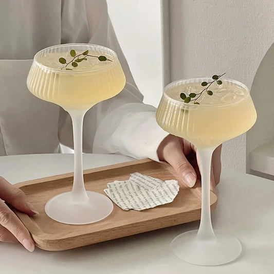 Gefrostetes hohes Glas mit vertikalem Muster – wunderschönes Glas für Getränke, Champagner und Cocktails