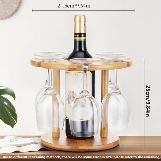 Eleganter Bambus-Weinglas-Halter - Doppelschichtig, Rundes Design für Heimbar & Wohnzimmerdekoration