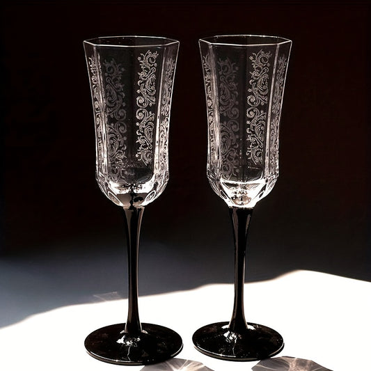 Elegante französische Vintage-Champagnergläser mit schwarzem Stiel - Perfekt für Cocktails, Hochzeiten oder elegante Abendessen